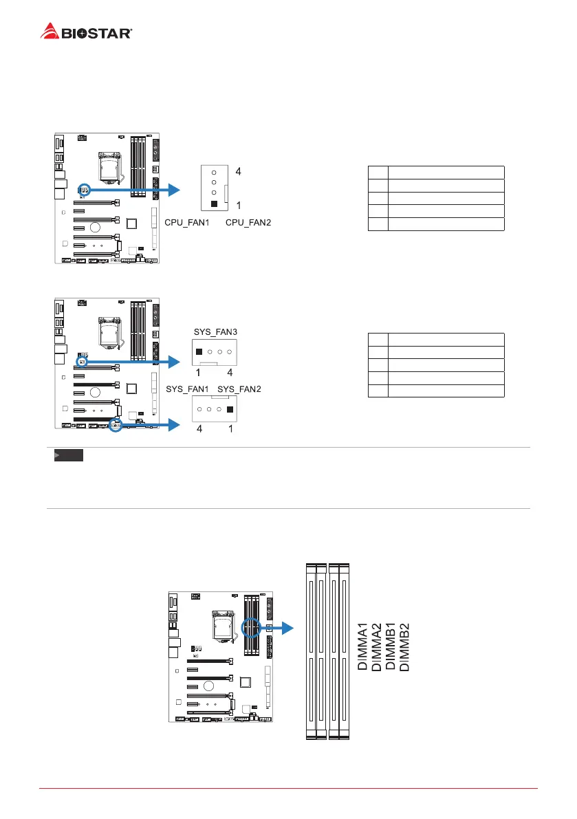 CPU_FAN1/2,SYS_FAN1/2/3support4-pinand3-pinheadconnectors.Whenconnecngwithwires