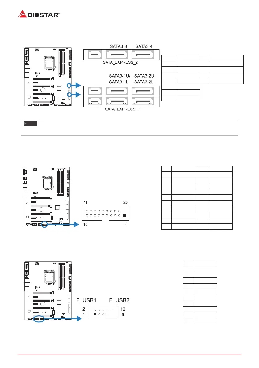F_USB1/2: Header for USB 2.0 Ports at Front Panel