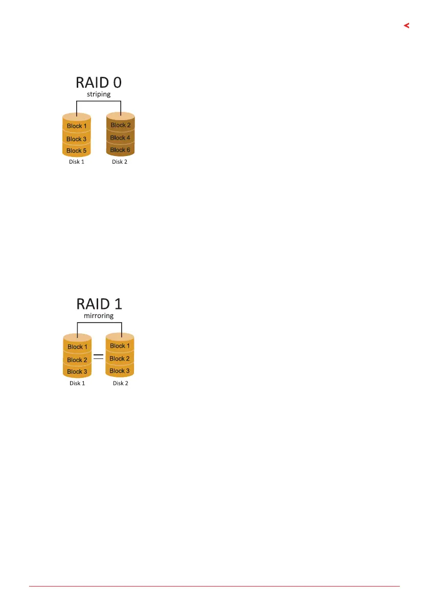 • Benets: Provides 100% data redundancy. Should one drive fail, the controller switches