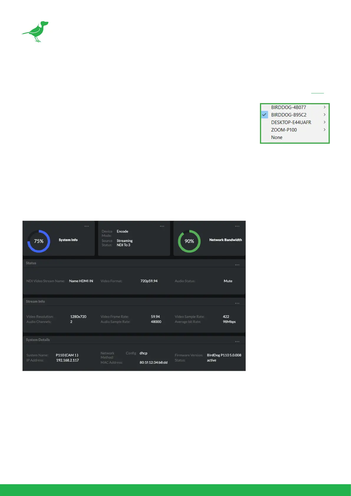 BirdDog cameras have a web interface (BirdUI) that is displayed by your computer brower and can be used to