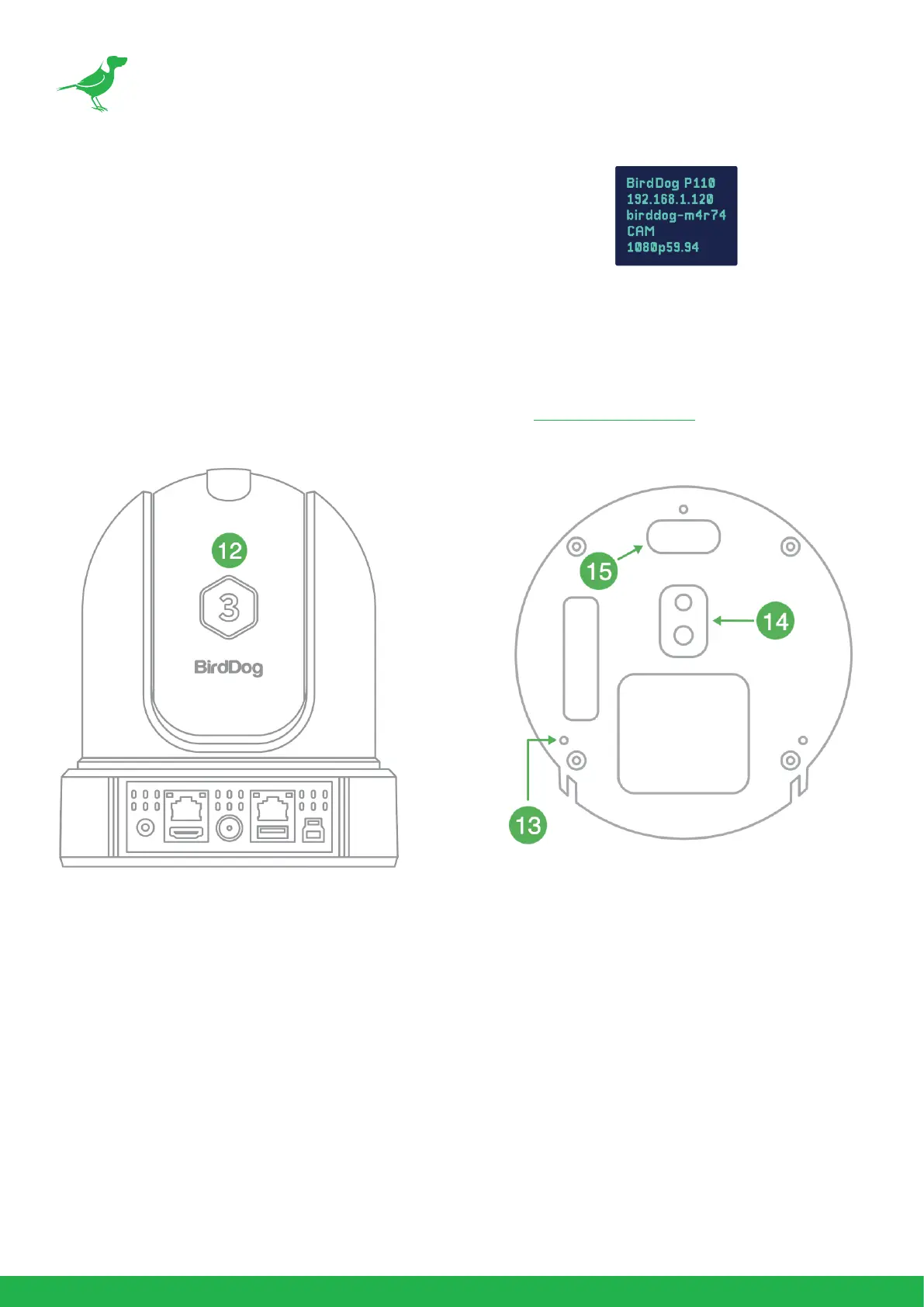 Bekijk gratis de handleiding van BirdDog P110, stel vragen en lees de antwoorden op veelvoorkomende problemen, of gebruik onze assistent om sneller informatie in de handleiding te vinden of uitleg te krijgen over specifieke functies.