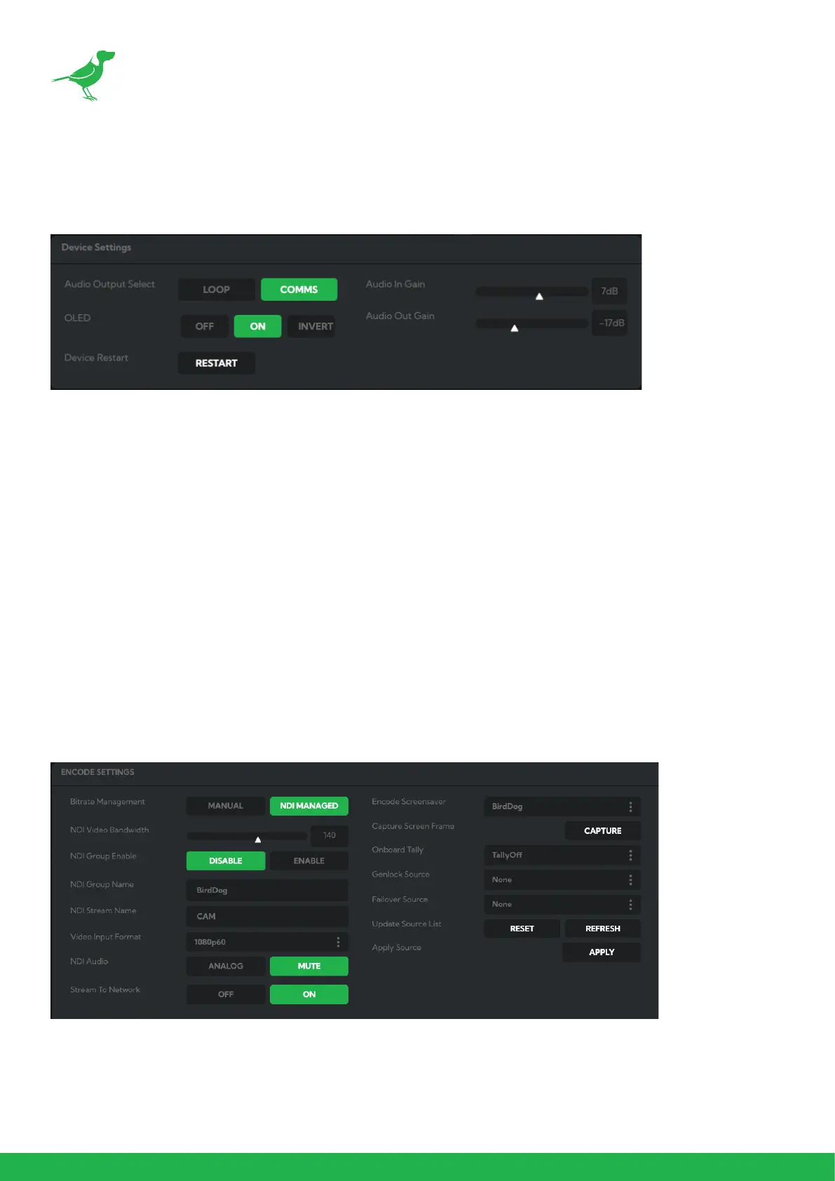 Birddog Devices allow you to set your target NDI® output bitrate. This allows you to select a compression ratio that