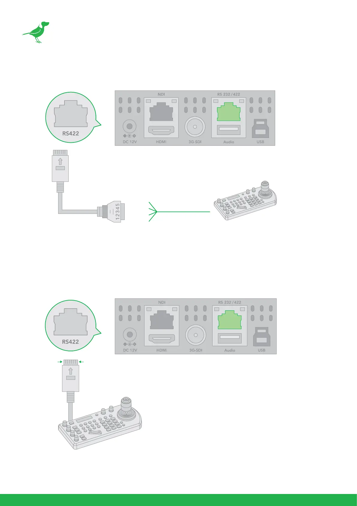 a. Use the included RJ45 to RS422b cable with a Phoenix connecter adaptor to make an RS422 connection