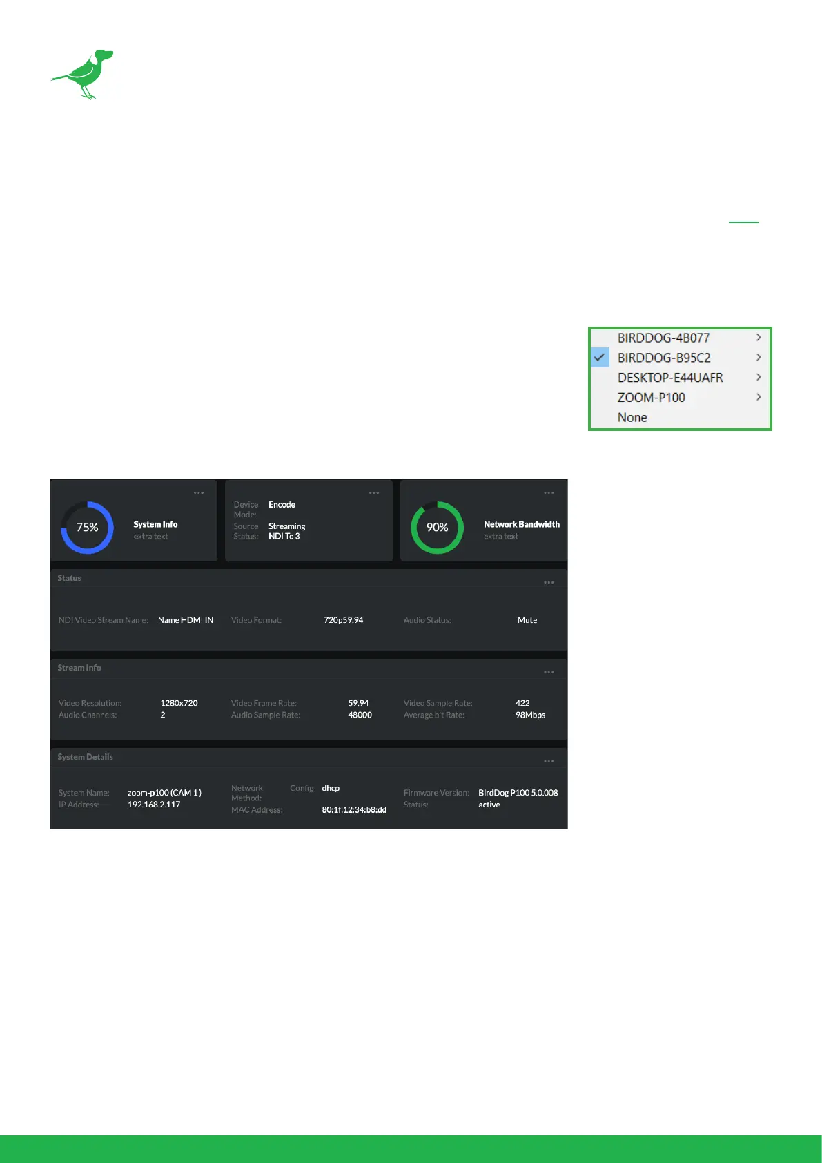 BirdDog cameras have a web interface (BirdUI) that is displayed by your computer brower and can be used to