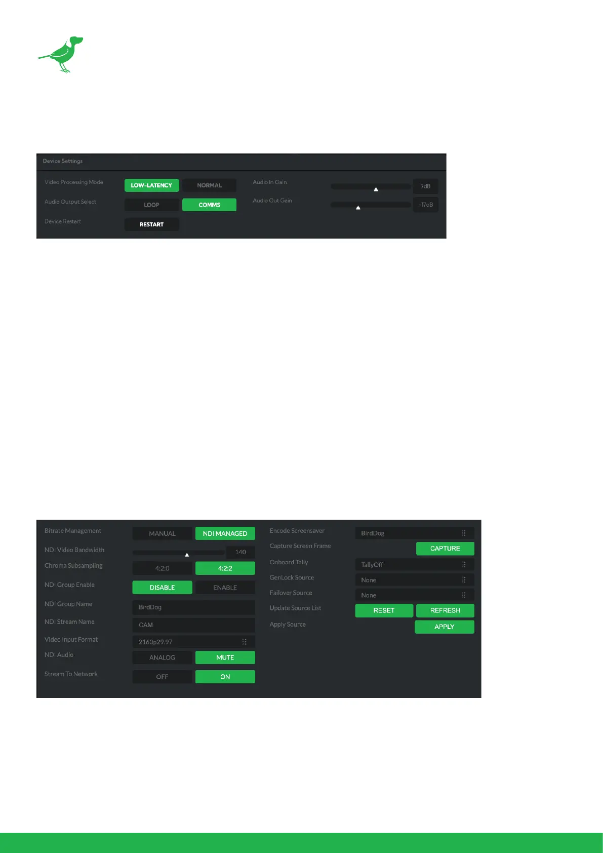 Birddog Devices allow you to set your target NDI® output bitrate. This allows you to select a compression ratio that