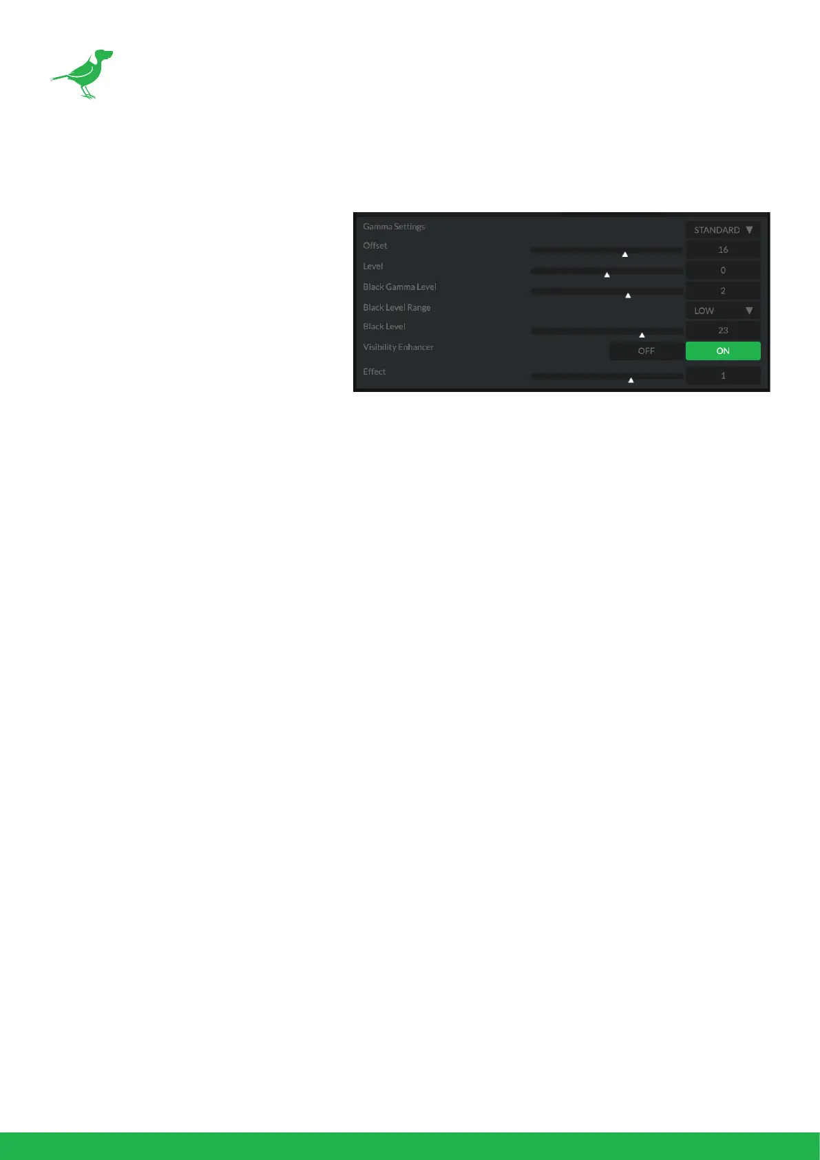 The Eect setting sets the intensity of the Visibility Enhancer function. Values range from -3 to +3.