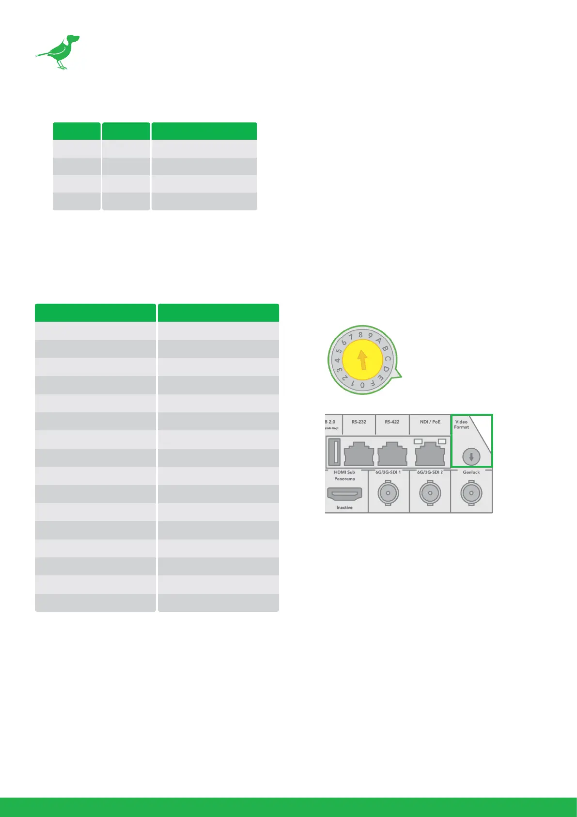 The rotary switch is used for setting the video format. The switch can select the video formats shown below. It