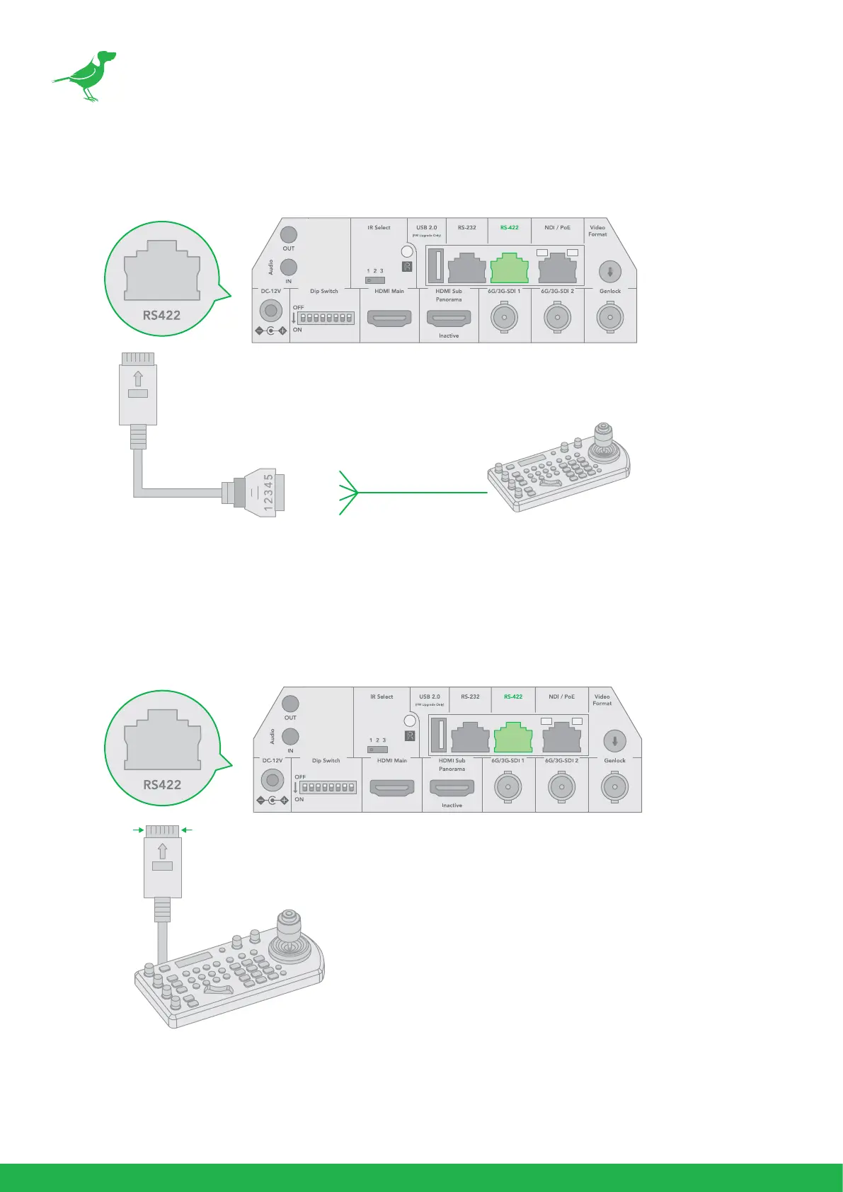 a. Use the included RJ45 to RS422 adaptor cable with a Phoenix connecter adaptor to make an RS422
