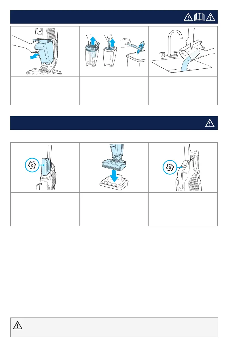 Note: Empty dirty water tank before beginning and be sure the strainer and filter stay dry. Use the