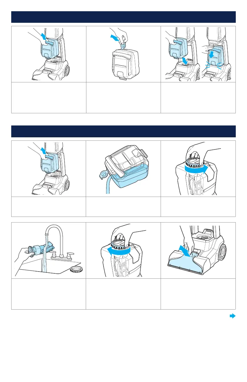 2. Empty dirty water tank. 3. Unscrew ring at bottom of