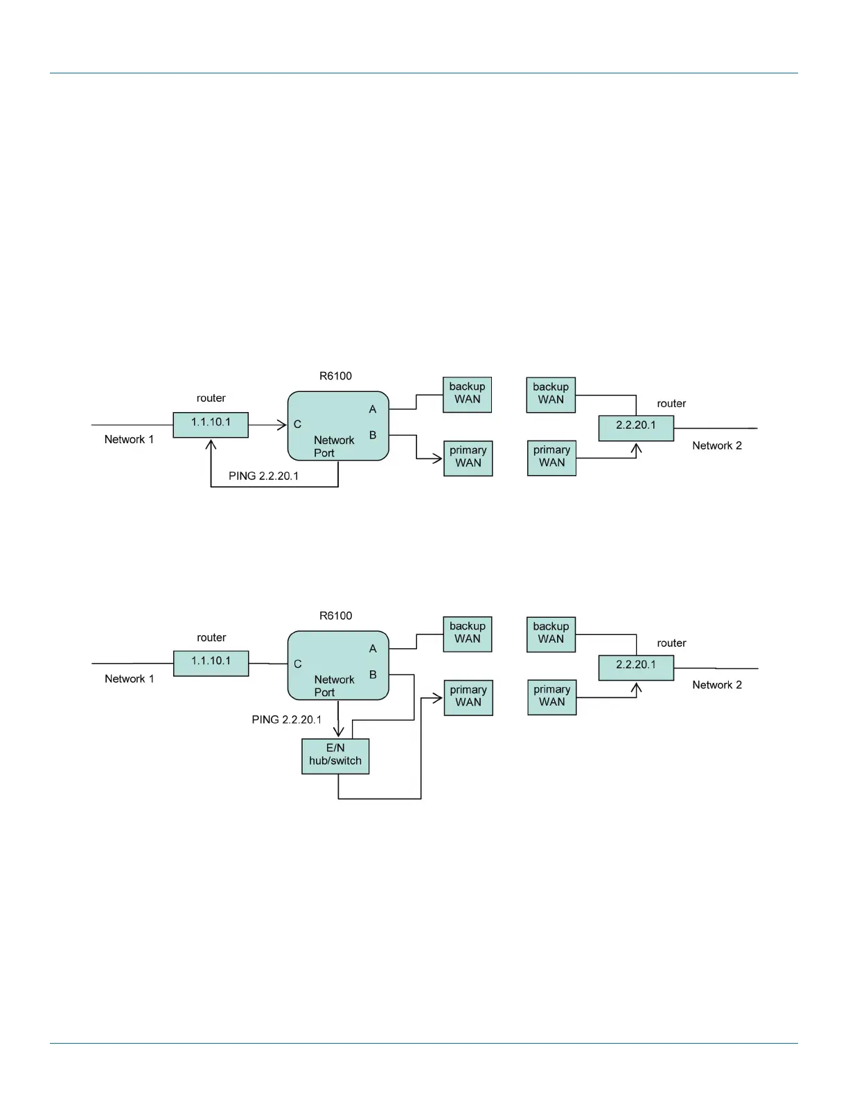 NOTE: The switch monitors the WAN connections by PINGing the far side router through the primary WAN link. If the primary