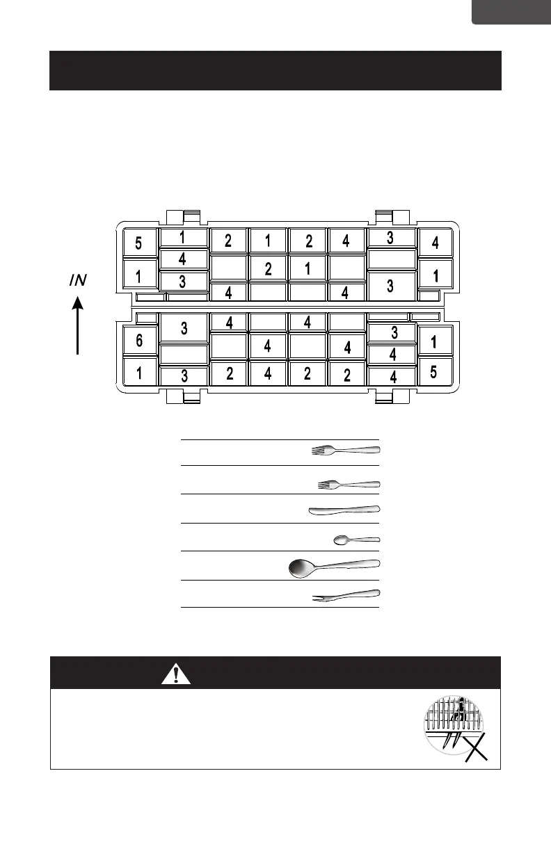 Los cubiertos deben colocarse en la cesta para cubiertos con asas de la parte inferior.