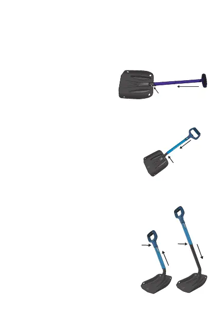 Para plegar la pala, pulsa el botón del pasador de resorte (A, ilustración
