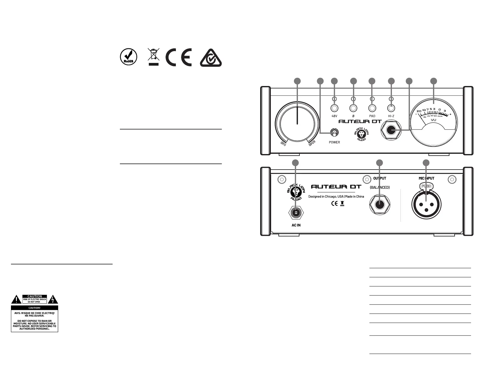 The Black Lion Audio Auteur DT complies with all applicable / RoHS/