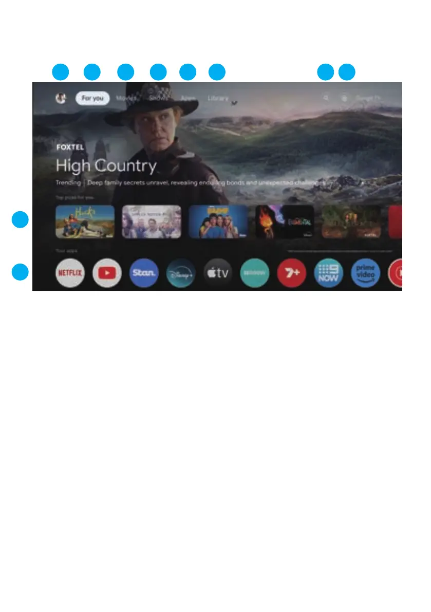2. FOR YOU - Main page for advertised TV shows, Live TV, Installed Apps, and top