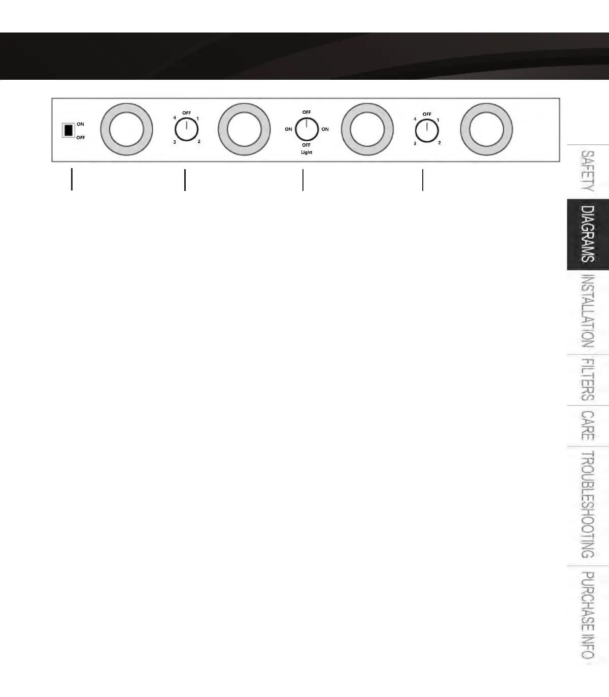 To turn on lights, turning the knob once clockwise will turn on the lights. Turning the knob once more or