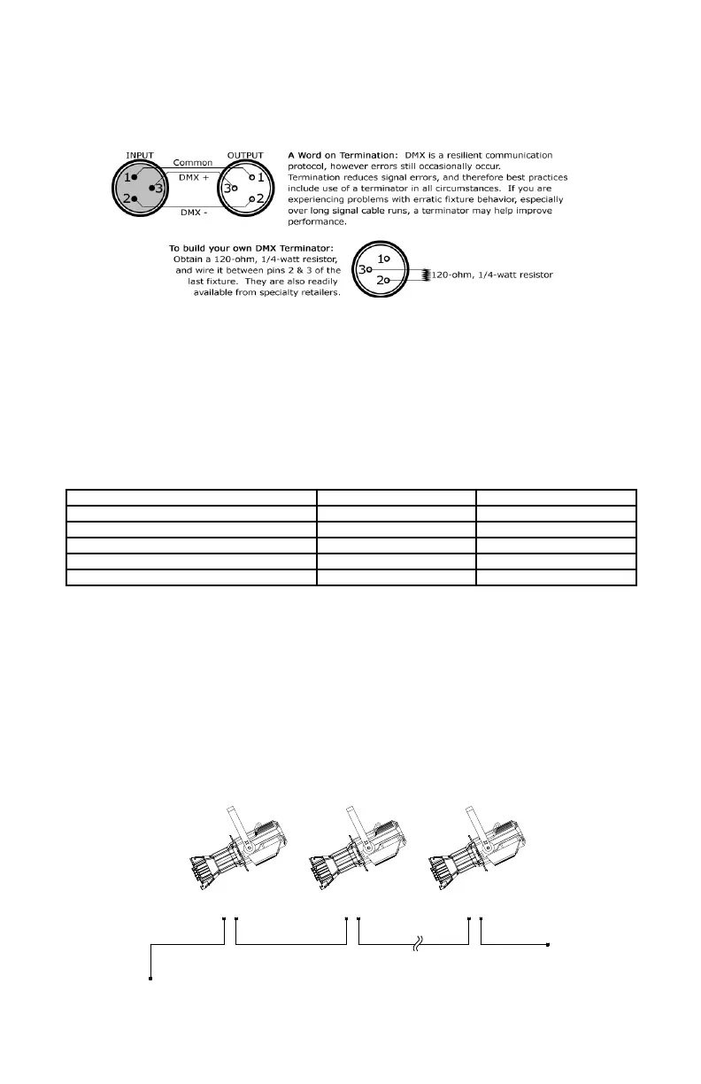 Step 2: Connect the female connector of the DMX cable to the rst xture’s