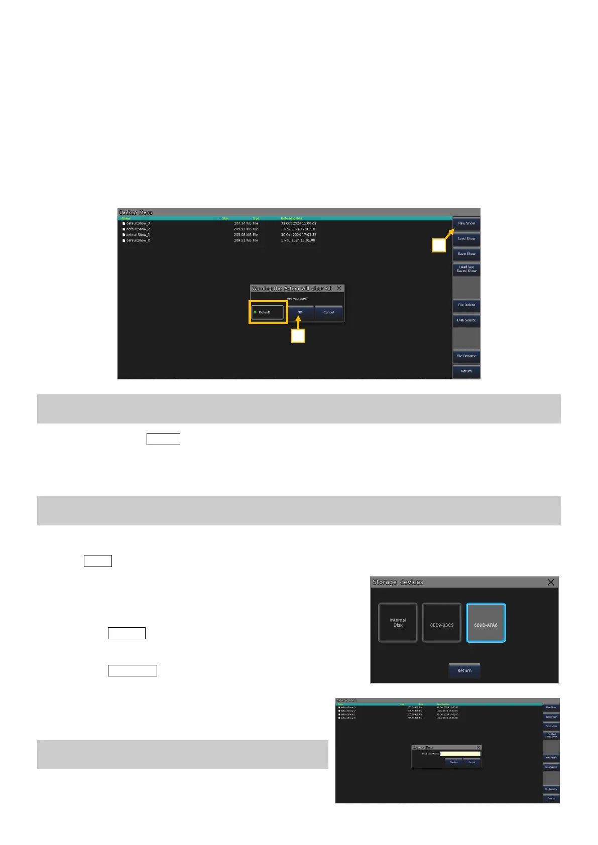 Note: All data, including setups, patching, presets, and programs, will be deleted. However, system fixtures and user