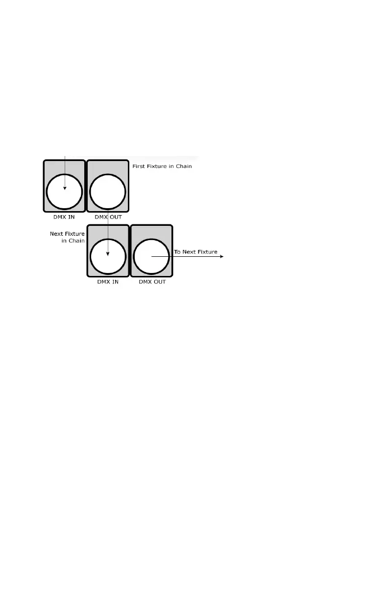 DMX cable to the output (female) 3 pin connector of