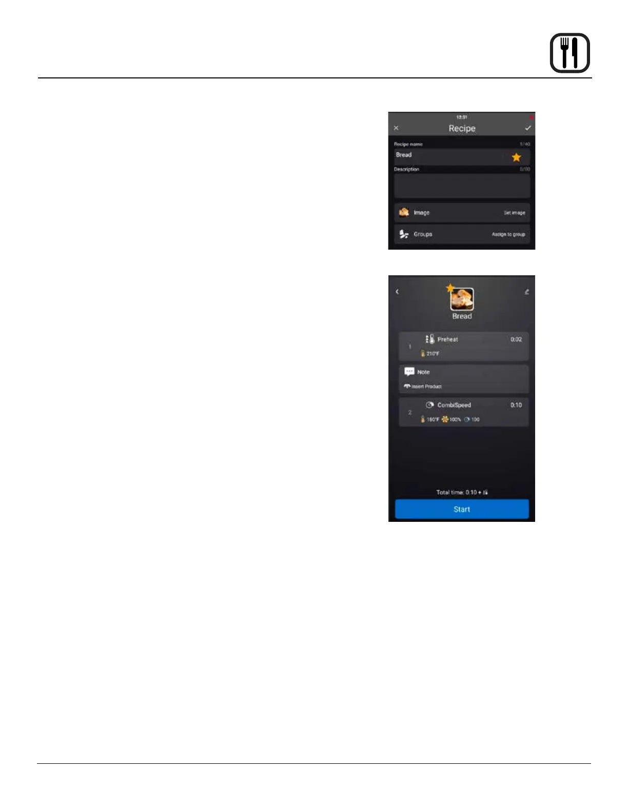 to assign the recipe as a favorite. The star will illumi-