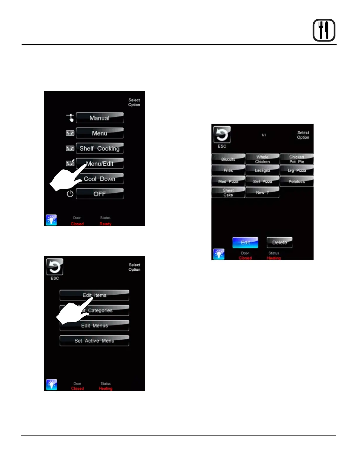 1. Select the MENU/EDIT icon to edit the recipes in the