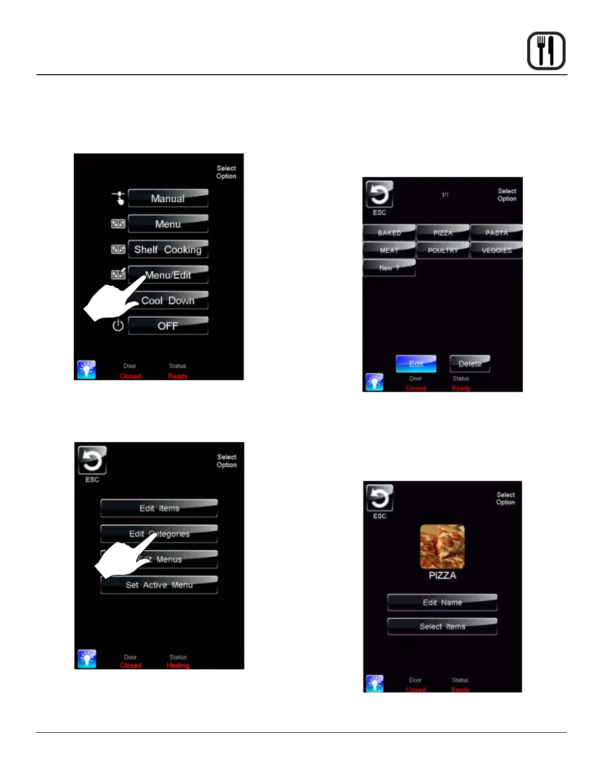 1. Select the MENU/EDIT icon to edit the recipes in the
