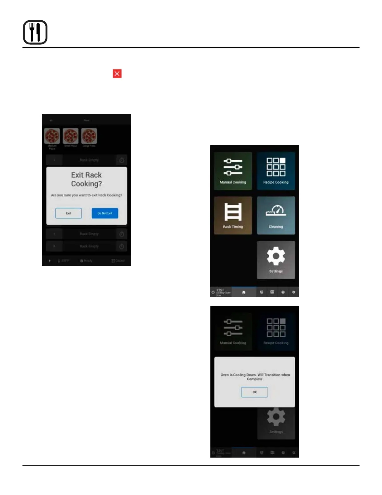 Home Screen, the oven will activate cool down