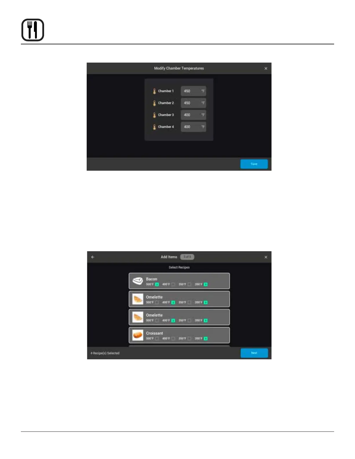 All recipes applicable to one or more of the chambers will be presented for selection. A