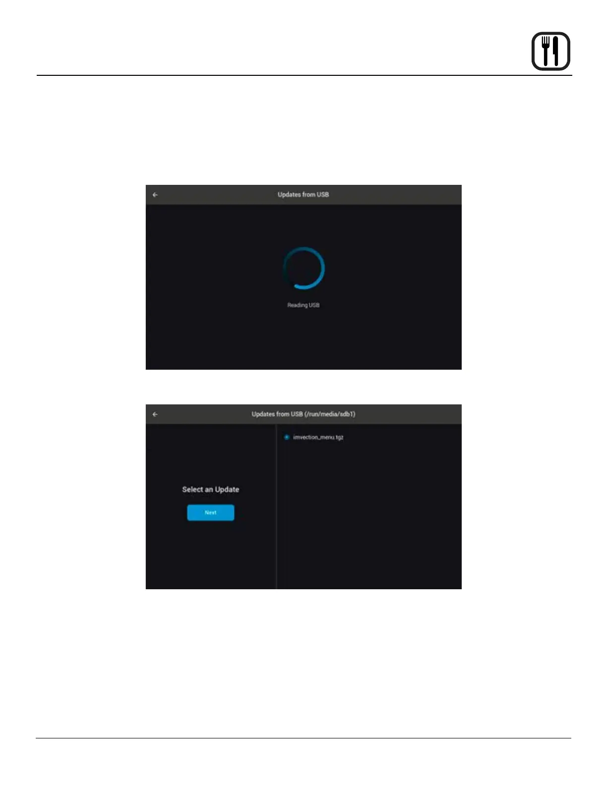 saved menu le on the root of a USB drive (default: imvection_menu.tgz), insert the USB