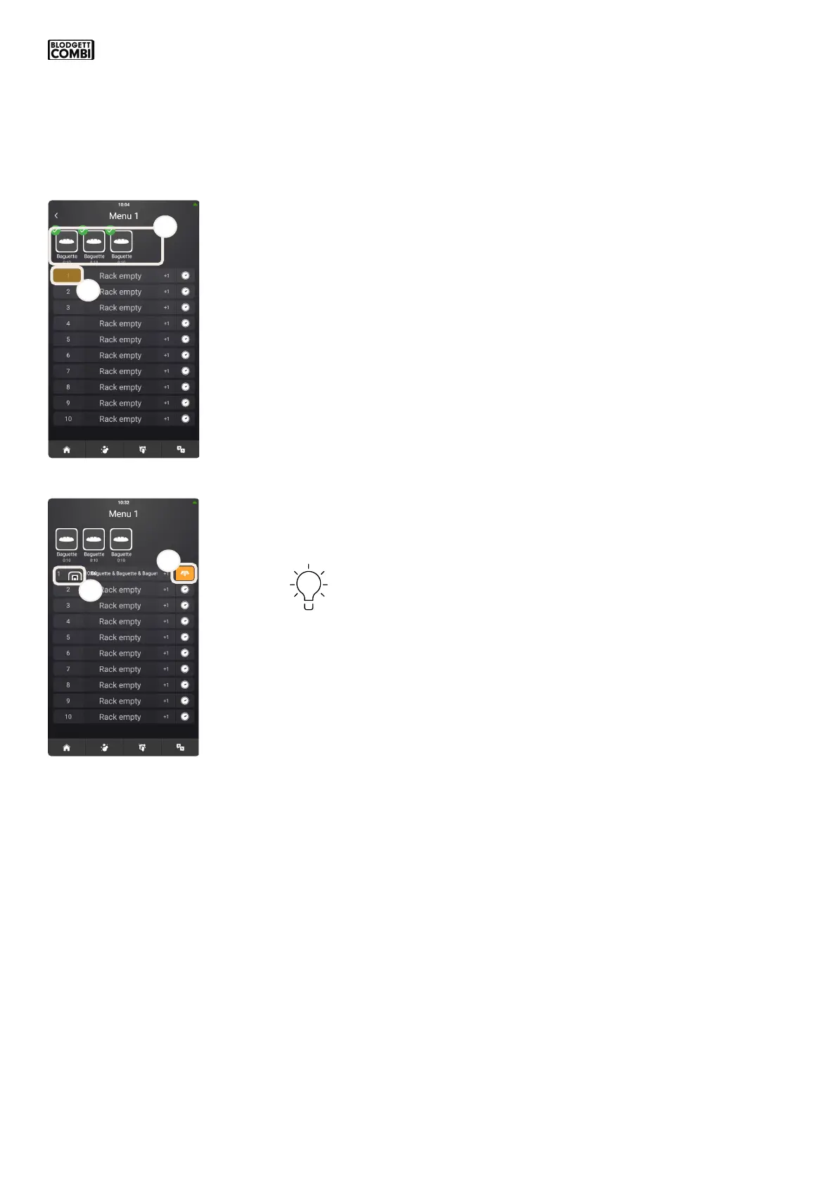 5. Touch the desired rack number.
