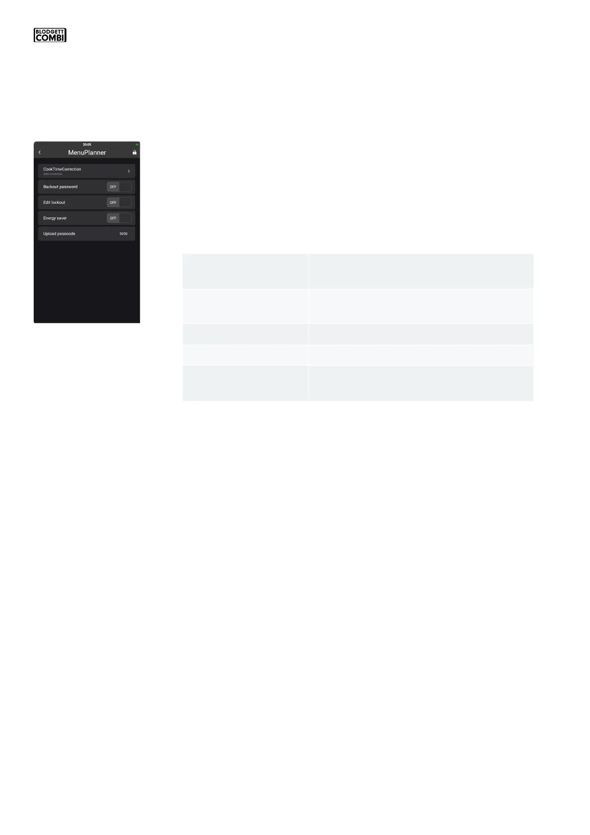 “Energy saver” Toggle the MenuPlanner energy saver on/off.