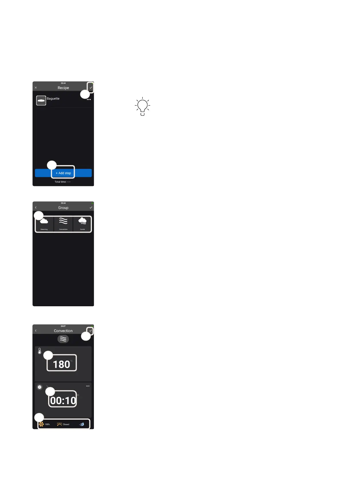 9. Touch the cooking mode - “Steaming”, “Convection” or “Combi”.