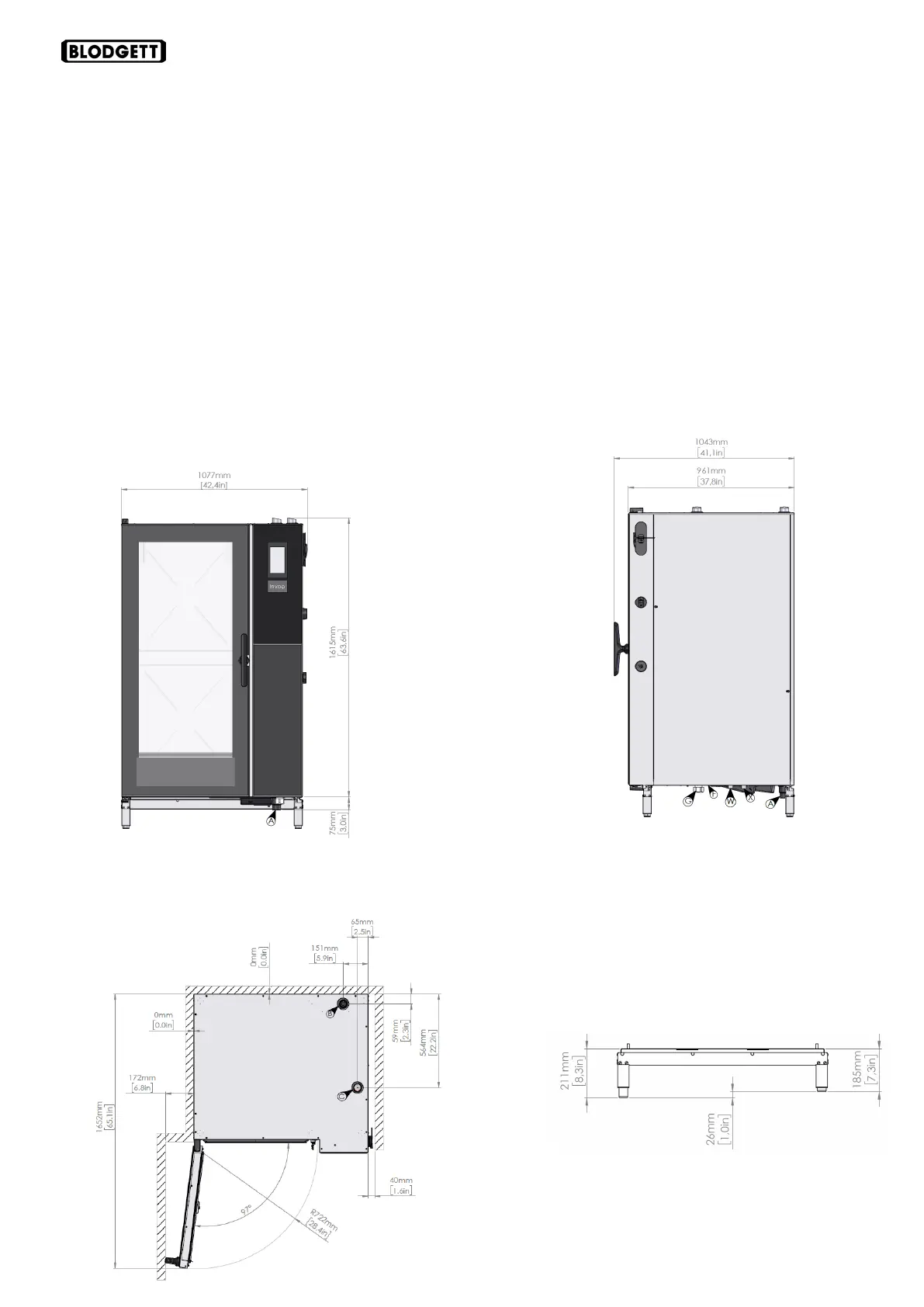 400 mm / 15.75 inches spacing on right side of oven recommended for