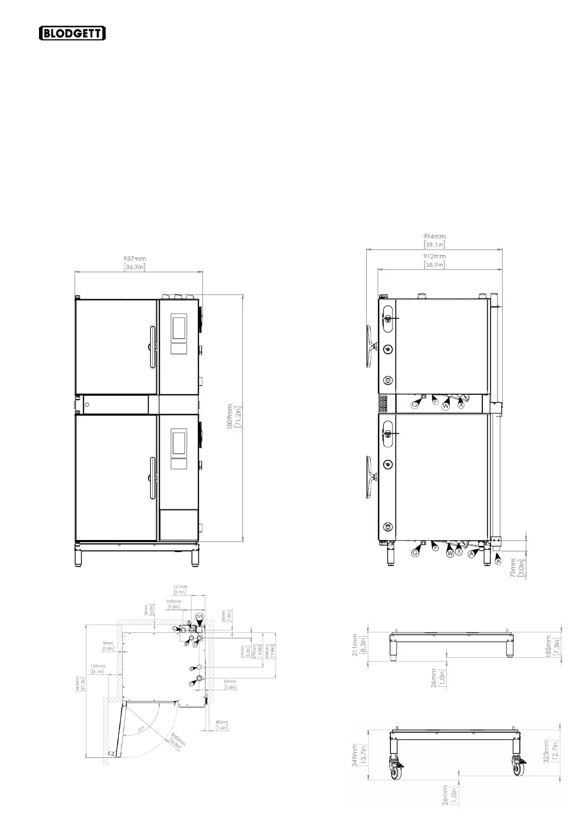 400 mm / 15.75 inches spacing on right side of oven recommended for