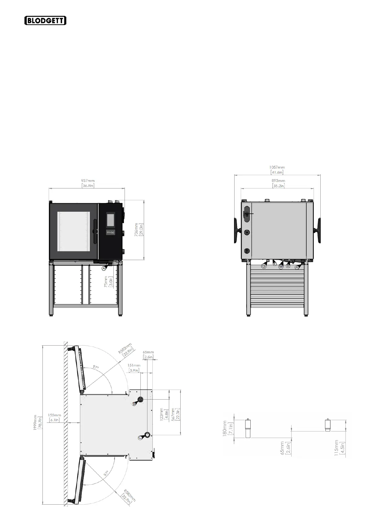 400 mm / 15.75 inches spacing on right side of oven recommended for