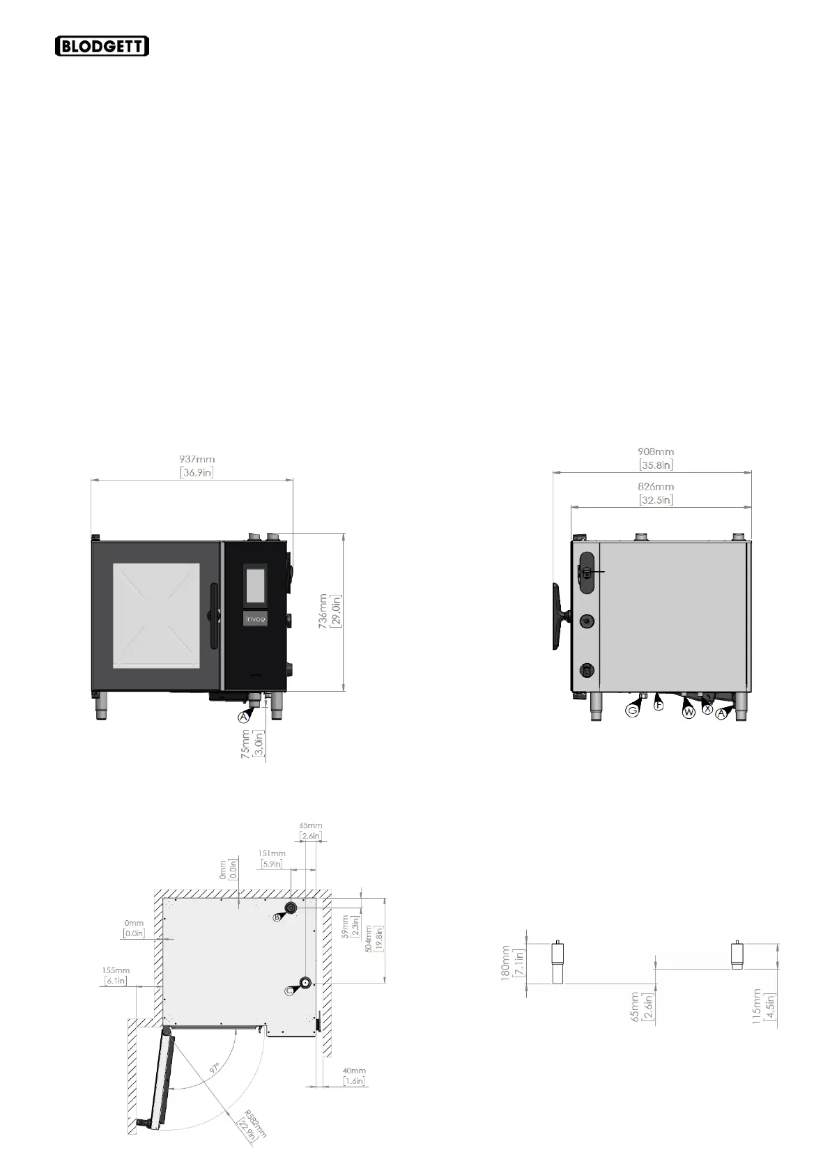 400 mm / 15.75 inches spacing on right side of oven recommended for