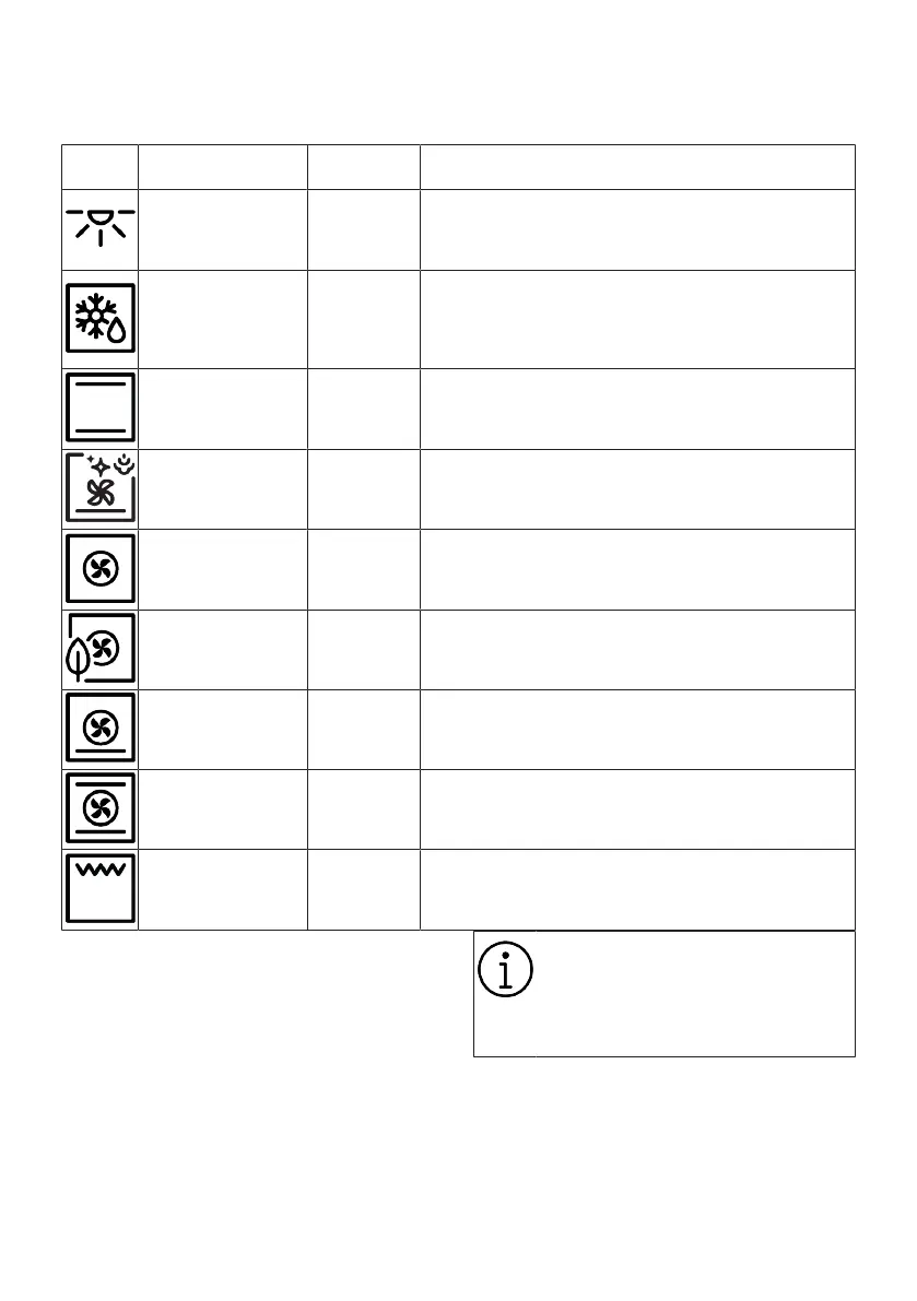 Upper heating, lower heating and fan heating functions oper-