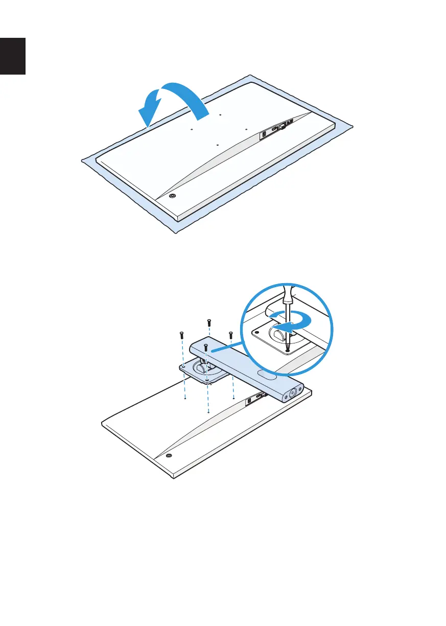 4. Attach the stand to the monitor with the four bolts and a screwdriver.
