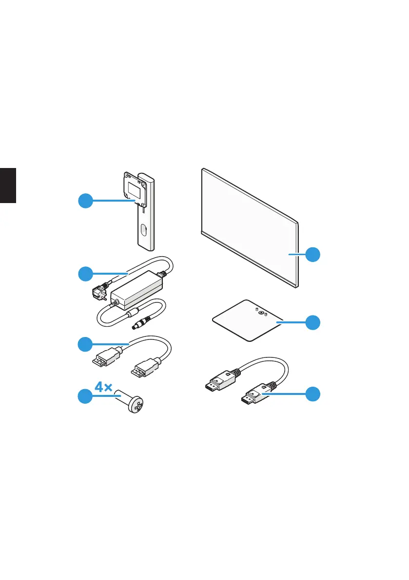 2. Überprüfen Sie, ob alle Teile vorhanden sind und ob weder der Monitor noch