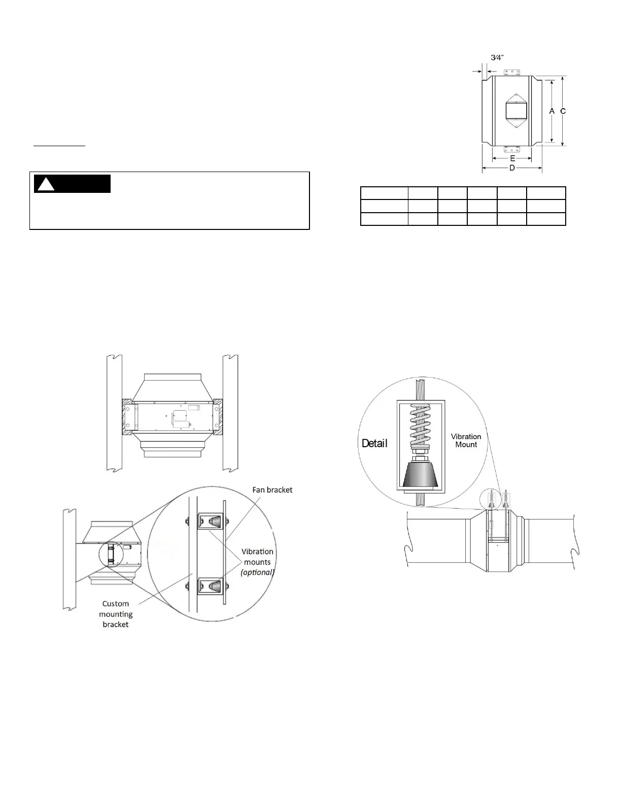 Note: Optional vibration mounts are not supplied with