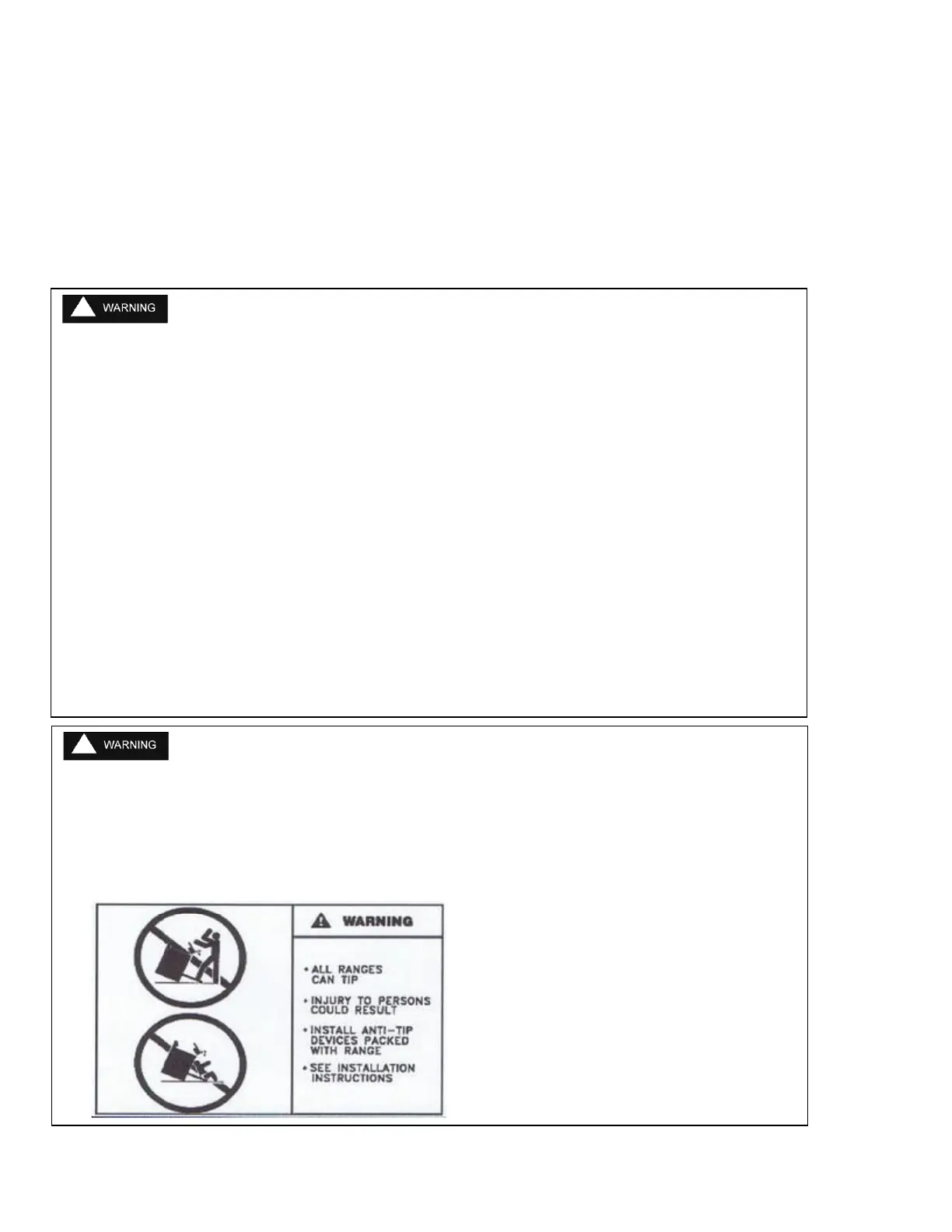 A child or adult can tip the range over which may cause serious personal injury or death.