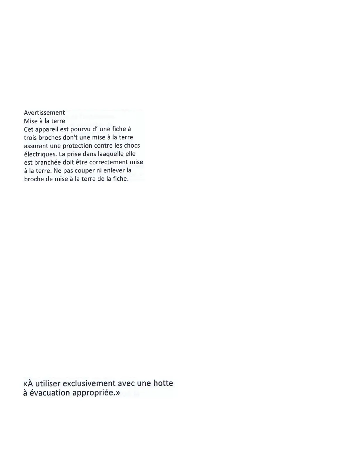 Proper ventilation is highly important for good operation. This appliance must be installed under a ventilation hood. We