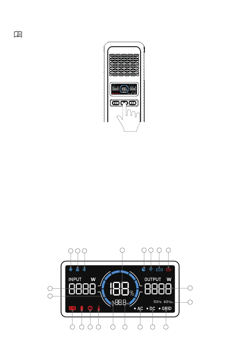• If there’s no output from both DC and AC for more than 1 minute, the unit will shut down