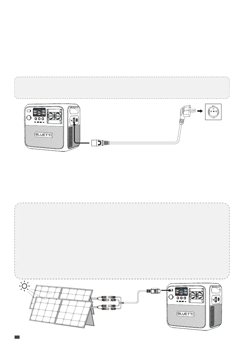 • Verwenden Sie zum schnelleren Laden beide MC4-Anschlüsse am