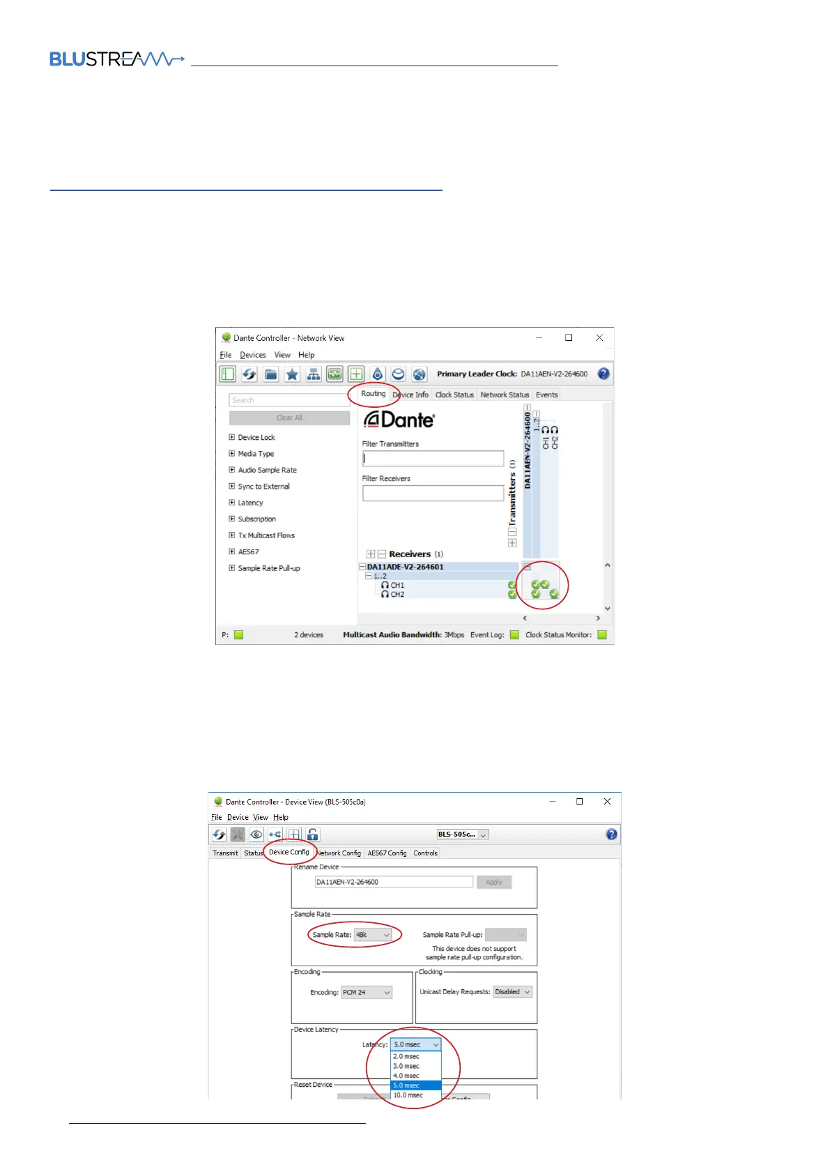receive audio from other Dante® products that are set up with the same sample rate. A mismatch in sample rate may