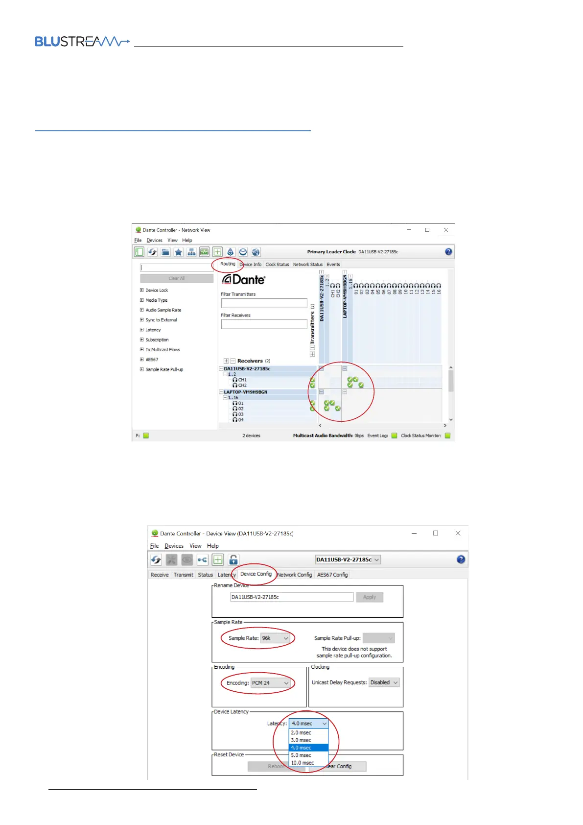 only transmit or receive audio from other Dante products that are set up with the same sample rate. A mismatch in