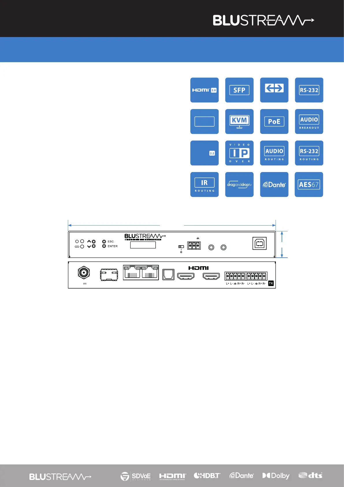 • Compatible with Blustream IP300UHD-RX and IP350UHD-TX/RX