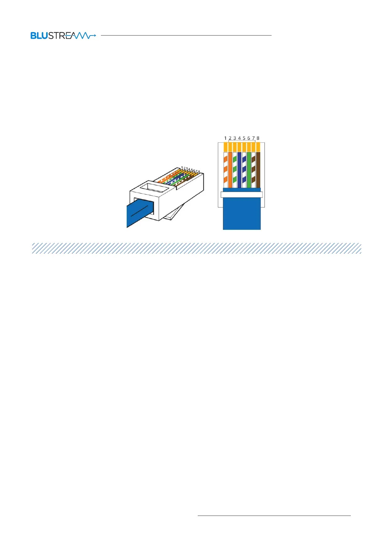 It is important that the interconnecting CAT cable between the Blustream HDBaseT products is terminated using the correct RJ45