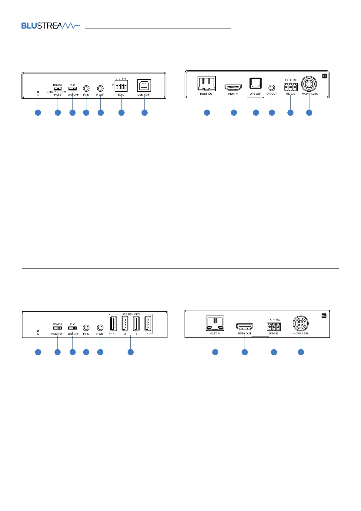 4 IR Input - connect to Blustream 5V 3.5mm IR receiver or from control processor