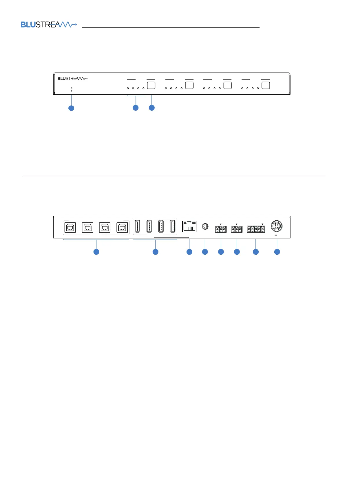 6 RS-232 Port 2 - 3-pin Phoenix connector for RS-232 pass-through to cascaded MX44KVM or a Blustream HDMI/